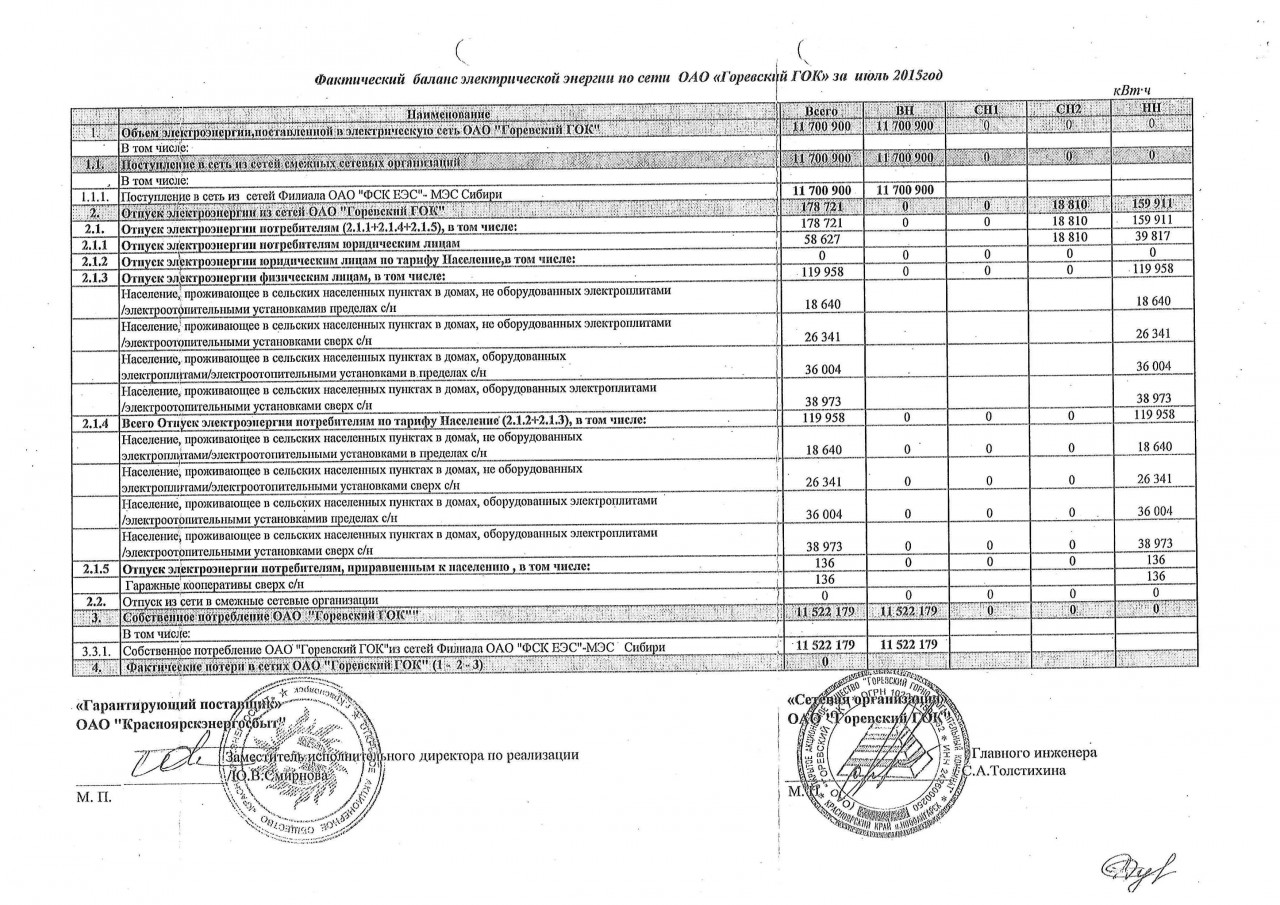 Фактический баланс электрической энергии по сети