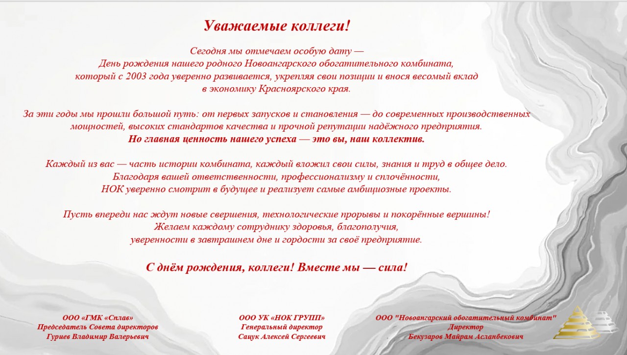 С Днем основания Новоангарского обогатительного комбината!